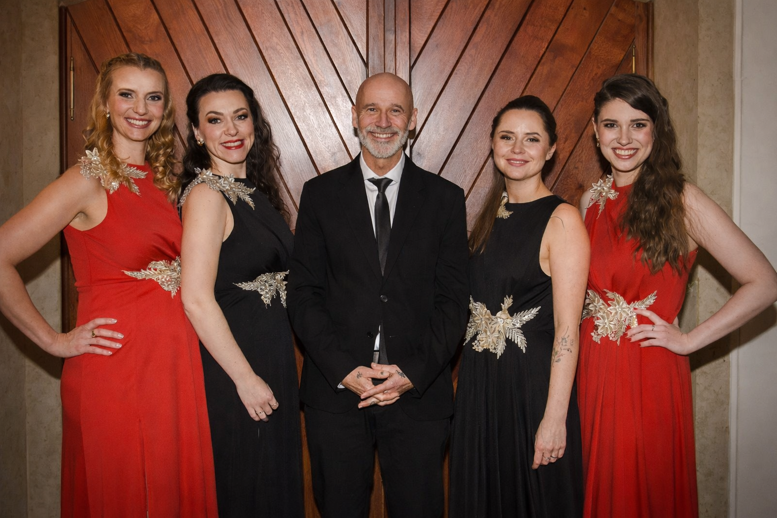 JANA ŠTĚPÁNKOVÁ, VERONIKA VRŠECKÁ A BARBORA JANSKÁ SMEJKALOVÁ, ZPÍVAJÍCÍ POD TAKTOVKOU DIRIGENTA, ZA DOPROVODU ORIGINÁLNĚ SLOŽENÉ HUDEBNÍ SKUPINY,